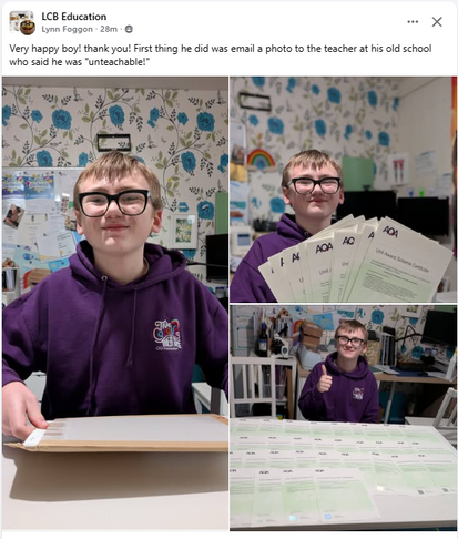 "LCB Education made it possible for our daughter to feel like a real learner again. The certificates are proof."